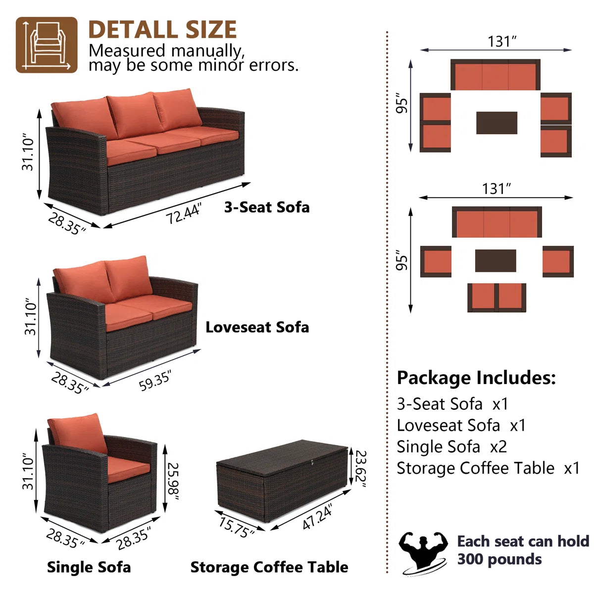 - 5-piece set includes seating for up to seven plus a storage coffee table