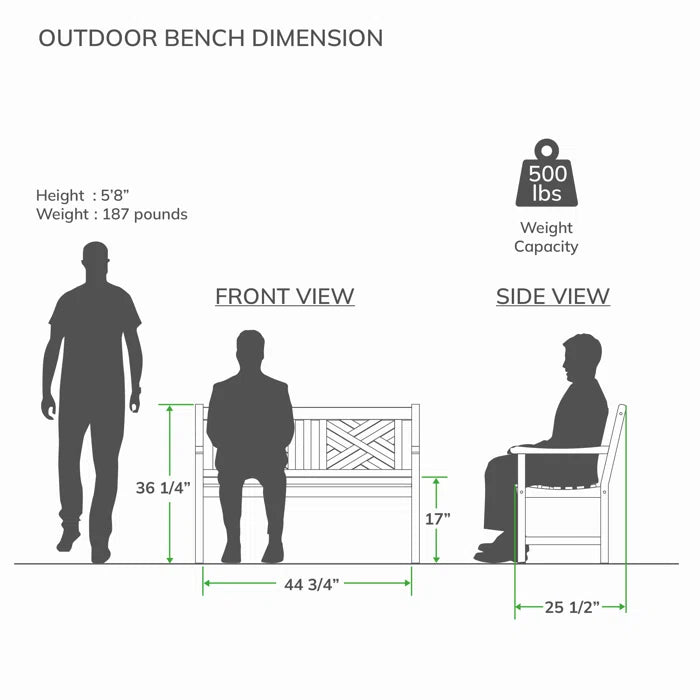 - Weather Resistant: Our patio bench is crafted to withstand all seasons and maintain its beauty. Premium quality solid teak holds up well against various weather conditions and outdoor elements.